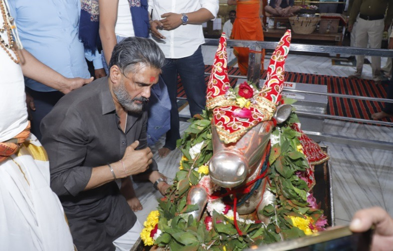 बॉलीवुड अभिनेता सुनील शेट्टी बुधवार को बाबा महाकाल के दरबार पहुंचे और मंदिर में पूजा-अर्चना की। इस दौरान उन्होंने भगवान महाकाल के सामने दीप प्रज्वलित किया और आशीर्वाद प्राप्त किया। सुनील शेट्टी ने कहा कि महाकाल के दर्शन और आशीर्वाद से उन्हें मानसिक शक्ति और सकारात्मक ऊर्जा मिलती है। उन्होंने कहा कि वे समय-समय पर उज्जैन आते रहते हैं और यह आध्यात्मिक अनुभव उन्हें जीवन और करियर में आगे बढ़ने की प्रेरणा देता है। मंदिर में उपस्थित श्रद्धालुओं ने भी अभिनेता के दर्शन किए और उनके साथ फोटो लेने का मौका पाया।