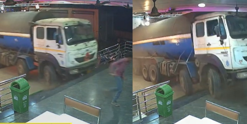 गुजरात के वलसाड में मुंबई-अहमदाबाद हाईवे पर एक बड़ा हादसा होते-होते टल गया। तेज रफ्तार टैंकर सड़क किनारे स्थित एक होटल में जा घुसा। यह पूरी घटना पास में लगे सीसीटीवी कैमरे में कैद हो गई, जिसका वीडियो सामने आने के बाद इलाके में हड़कंप मच गया। हादसे के वक्त होटल में कई लोग मौजूद थे। टैंकर के अचानक भीतर घुसते ही वहां अफरा-तफरी मच गई और लोग जान बचाकर बाहर भागने लगे। बताया जा रहा है कि टैंकर में हाइड्रोक्लोरिक एसिड भरा था, जिससे किसी बड़े रासायनिक हादसे की आशंका बनी हुई थी। गनीमत रही कि इस दुर्घटना में कोई हताहत नहीं हुआ। सूचना मिलते ही पुलिस और दमकल विभाग की टीम मौके पर पहुंची और स्थिति को संभाला। फिलहाल पुलिस मामले की जांच कर रही है और हादसे के कारणों का पता लगाया जा रहा है।