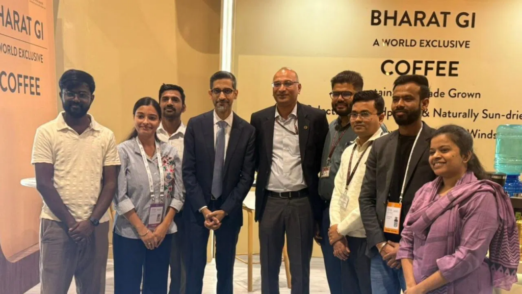 नई दिल्ली के भारत मंडपम में आयोजित AI Impact Summit के दौरान सुंदर पिचाई ने भारत के GI टैग वाले उत्पादों का अनुभव किया। इस दौरान उन्होंने Bharat GI स्टॉल पर कॉफी की चुस्की ली और उसका स्वाद चखकर ‘Wow’ कह उठे। केंद्रीय मंत्री पीयूष गोयल ने इस वीडियो को सोशल मीडिया पर शेयर किया, जो अब तेजी से वायरल हो रहा है। यह GI कॉफी भारत की भौगोलिक पहचान वाले उत्पादों को बढ़ावा देने के उद्देश्य