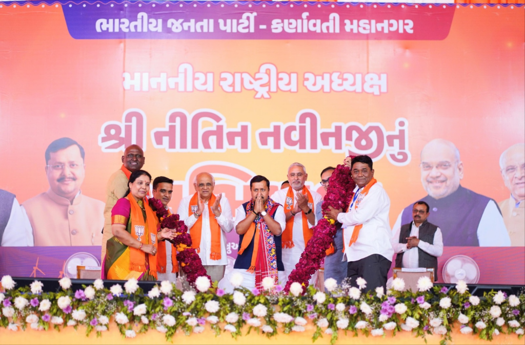 भाजपा के राष्ट्रीय अध्यक्ष नितिन नबीन ने अपने तीन दिवसीय गुजरात दौरे की शुरुआत की। उन्होंने नारायणपुरा स्थित जीएससी बैंक में सांसदों और विधायकों के साथ एक महत्वपूर्ण बैठक की। बैठक का उद्देश्य पार्टी की रणनीति, आगामी योजनाओं और संगठनात्मक मामलों पर विचार-विमर्श करना था। स्वागत समारोह में गुजरात के मुख्यमंत्री भूपेंद्र पटेल और उपमुख्यमंत्री हर्ष संघवी भी उपस्थित रहे। इस मौके पर वरिष्ठ पार्टी नेताओं ने