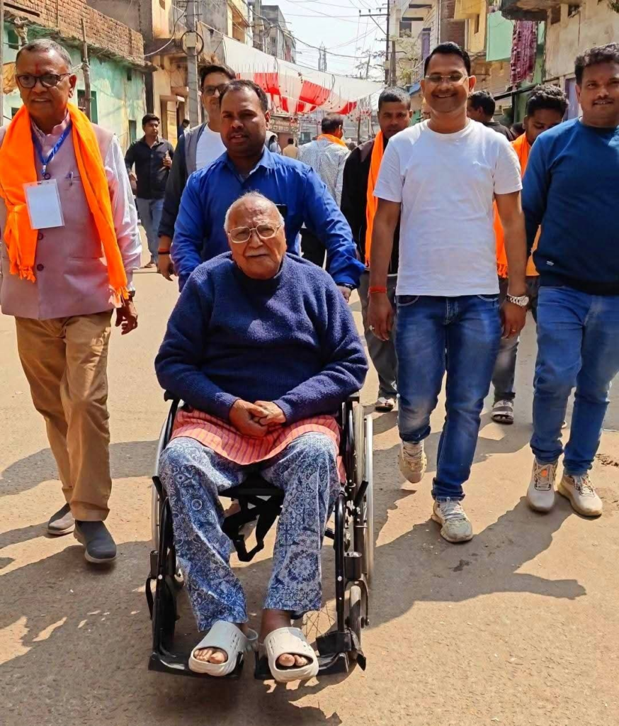 झारखंड नगर निकाय चुनाव 2026 के तहत आज हजारीबाग में लोकतंत्र की एक बेहद खूबसूरत तस्वीर देखने को मिली। हजारीबाग लोकसभा सांसद मनीष जायसवाल के पूज्य पिता और हजारीबाग के पूर्व जिला परिषद अध्यक्ष ब्रजकिशोर जायसवाल ने अपनी शारीरिक अस्वस्थता के बावजूद मतदान केंद्र पहुँचकर अपने मताधिकार का प्रयोग किया। 87 वर्षीय ब्रजकिशोर जायसवाल ने वार्ड संख्या 28 स्थित उर्दू स्कूल, काजी मुहल्ला के बूथ