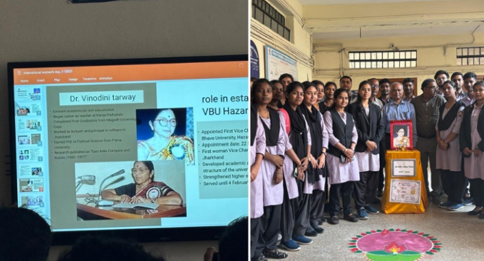 अन्तर्राष्ट्रीय महिला दिवस पखवाड़ा में विनोबा भावे विश्वविद्यालय के संस्थापक कुलपति स्वर्गीय विनोदीनि तर्वे को याद कर श्रद्धांजलि अर्पित की गई। मौके पर इस अवसर पर स्नातकोत्तर जन्तुविज्ञान विभाग द्वारा आयोजित एक कार्यक्रम में उनकी तस्वीर पर माल्यार्पण व पुष्पार्चण किया गया। मौके पर विभागाध्यक्ष डॉ किशोर कुमार गुप्ता ने बताया कि पूरे झारखण्ड और बिहार में उन्हें प्रथम महिला कुलपति होने का गौरव प्राप्त है। एक बंजर पड़ा भूमि पर उन्होंने विश्वविद्यालय जैसे ज्ञान के वृक्ष का बीजारोपण किया। विश्वविद्यालय को स्थापित करने में उनके कर्मठ, निष्ठा और समर्पण की कहानी आज भी लोगों को प्रेरित करती है। विभाग प्रत्येक वर्ष महिला दिवस पखवाड़े में पूरे विश्वविद्यालय परिवार की ओर से इस विदुषी महिला के प्रति अपनी कृतज्ञता अर्पित करता रहा है।