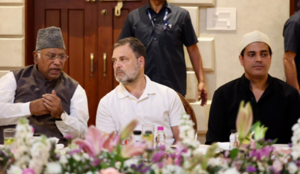 लोकसभा में विपक्ष के नेता Rahul Gandhi, कांग्रेस अध्यक्ष Mallikarjun Kharge और कांग्रेस अल्पसंख्यक विभाग के अध्यक्ष Imran Pratapgarhi नई दिल्ली में आयोजित एक इफ्तार पार्टी में शामिल हुए। यह इफ्तार