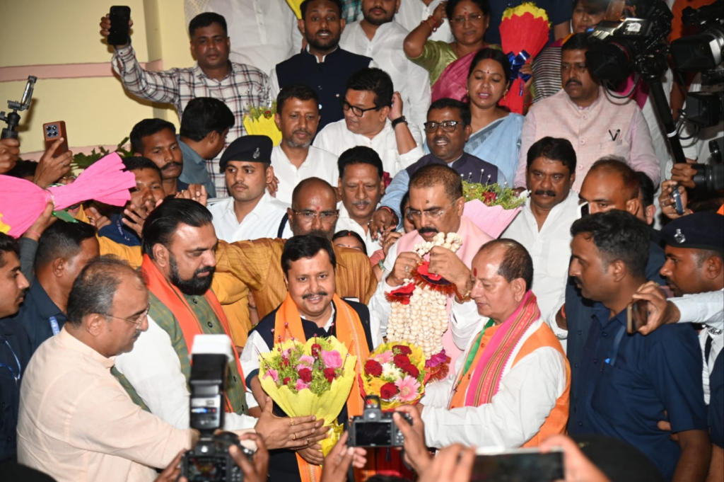 Patna में राज्यसभा चुनाव में National Democratic Alliance ने 5-0 से शानदार जीत दर्ज की है। इस जीत के बाद एनडीए खेमे में जश्न का माहौल है। विधानसभा पहुंचने पर Nitin Nabin का जोरदार स्वागत किया गया।