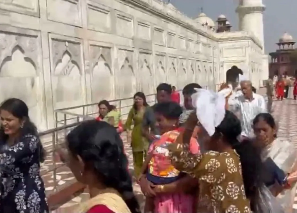 Taj Mahal में उस वक्त अफरा-तफरी मच गई जब मधुमक्खियों के एक झुंड ने अचानक पर्यटकों पर हमला कर दिया। घटना के दौरान कई पर्यटक घबरा गए और इधर-उधर भागने लगे। स्थिति को देखते हुए मौके पर मौजूद सुरक्षाकर्मियों ने तुरंत मोर्चा संभाला और पर्यटकों को सुरक्षित स्थानों पर पहुंचाया।