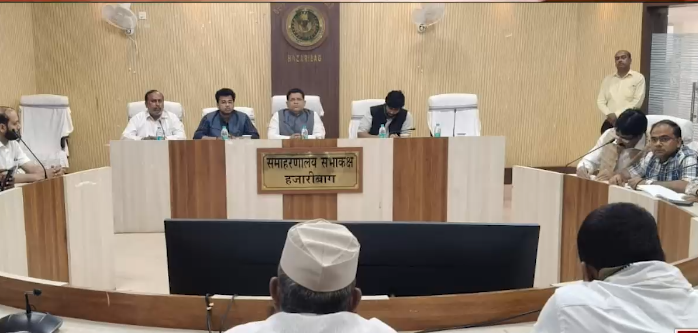 हजारीबाग में 18 मार्च 2026 को आगामी रामनवमी, ईद-उल-फितर और सरहुल को शांतिपूर्ण तरीके से मनाने को लेकर जिला प्रशासन अलर्ट दिखा। उपायुक्त शशि प्रकाश सिंह की अध्यक्षता में समाहरणालय सभागार में अहम बैठक आयोजित की गई। बैठक में विभिन्न समुदायों के मौलाना, बुद्धिजीवी और सद्भावना मंच के सदस्य शामिल हुए। इस दौरान बिजली व्यवस्था दुरुस्त करने, सड़कों की मरम्मत, विवादित गानों पर रोक, संवेदनशील इलाकों में सीसीटीवी, बैरिकेडिंग और सुरक्षा बलों की तैनाती जैसे अहम मुद्दों पर चर्चा हुई।