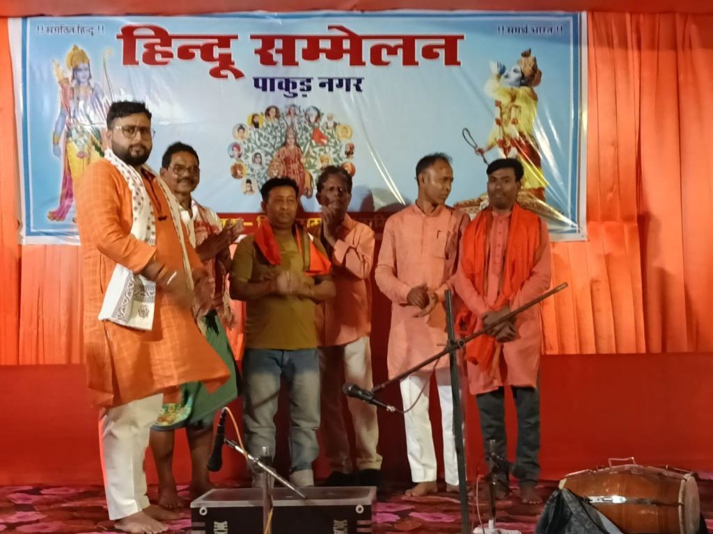18 मार्च को देर शाम शहर के वार्ड नंबर तीन में अवस्थित छोटी अलीगंज चैती दुर्गा मंदिर प्रांगण में विराट हिन्दू सम्मेलन का आयोजन किया गया। संध्या संध्या 4:00 कार्यक्रम स्थल से हजारों की संख्या में शोभायात्रा निकाली गई। शोभायात्रा मुख्य सड़क से पुराना होस्पीटल चौक,भगत पाड़ा, नगर थाना, राज हाई स्कूल रोड, खदान पाड़ा, माइनिंग ऑफिस होते हुए वापस चैती दुर्गा मंदिर प्रांगण पहुंची l नगर भ्रमण के दौरान भजन कीर्तन होता रहा। कार्यक्रम स्थल पहुंचने के बाद शंख ध्वनि, सामूहिक हनुमान चालीसा पाठ,भरतनाट्यम नृत्य देशभक्ति गीत व बौद्धिक हुआ। मुख्य वक्ताओं के द्वारा प्रवचन भी दिया गया। l हिंदू सम्मेलन में पहुंचे