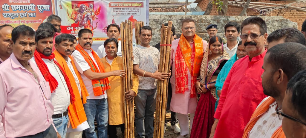 हजारीबाग लोकसभा क्षेत्र में सांसद मनीष जायसवाल ने रामनवमी की परंपरा को सशक्त करने के लिए “सांसद दंड वितरण अभियान 2026” की शुरुआत की। मांडू विधानसभा क्षेत्र के चरही से शुरू हुए इस अभियान के तहत चुरचू, घाटो, आरा, मांडू और डाड़ी मंडलों के कुल 261 अखाड़ों को दंड यानी लाठी वितरित किए गए। सांसद ने कहा कि इस पहल का उद्देश्य रामनवमी शोभायात्रा में पारंपरिक दंड कला को फिर से जीवंत करना