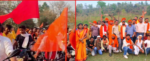 राष्ट्रीय संगठन रामभक्त सेवा दल की ओर से श्री राम जन्मोत्सव एवं नवमी के अवसर पर हिरणपुर प्रखंड अंतर्गत तोड़ाई से खेजुरदंगा, धनगरा होते हुए हिरणनदुबा के पहाड़ में भव्य कार्यक्रम का आयोजन किया गया। इस मौके पर हजारों की संख्या में रामभक्त मौजूद थे। रैली के दौरान श्री राम के नाम से गूंज उठा पूरा क्षेत्र, रामभक्त भगवा वस्त्र एवं झंडा लिए राम जन्मोत्सव मना रहे थे। कार्यक्रम के आयोजक संगठन के प्रदेश अध्यक्ष राहुल सिंह ने बताया कि संगठन के द्वारा एवं स्थानीय पहाड़िया समुदाय के ग्रामीणों के सहयोग से हिरण्डुबा के पहाड़ी टोला के पहाड़ में भव्य श्री राम जानकी हनुमान मंदिर के निर्माण को लेकर आज नींव रखा गया जो विधिवत यहां के ग्रामीणों के द्वारा पूजा अर्चना के साथ मूर्ति का स्थापना किया गया। इस जगह पर आज से भव्य मंदिर के निर्माण में जुटेंगे रामभक्त।