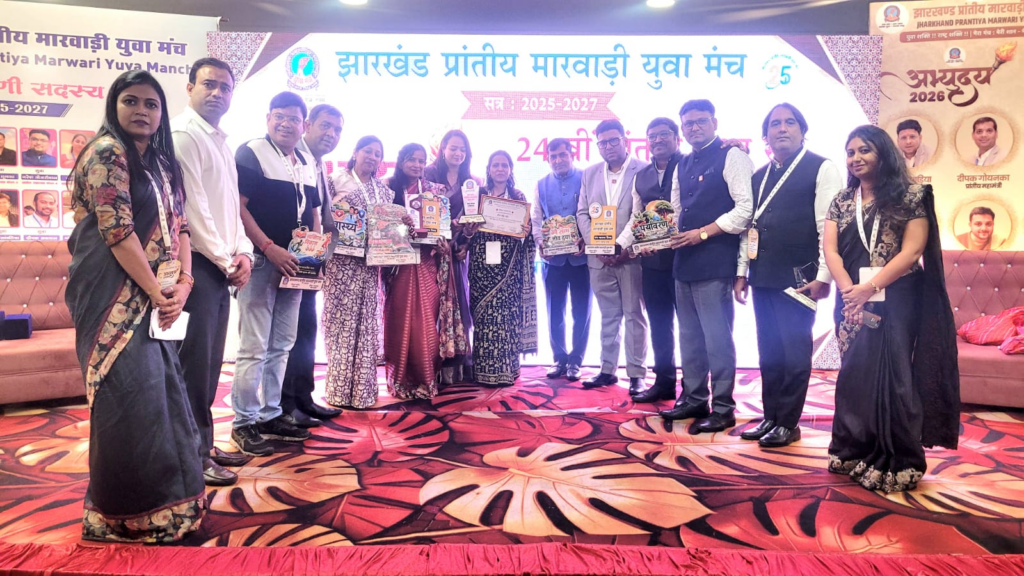 टाटानगर में हुए झारखण्ड प्रांतीय लघु अधिवेशन(2025-2027) में आए राष्ट्रीय अध्यक्ष श्री सुरेश एम जैन जी, प्रांतीय अध्यक्ष श्री विशाल पाडिया जी एवं अन्य पदाधिकारियो की उपस्थिति मे झरिया समृद्धि शाखा को वर्ष 2025-26 के लिए श्रेष्ठ महिला शाखा का पुरस्कार देकर सम्मानित किया गया। इसके साथ ही अन्य 12 पुरास्कर भी प्राप्त हुए । इन सब के लिए शाखा अध्यक्ष जया अग्रवाल ने बताया यह सिर्फ केवल उनकी मेहनत का