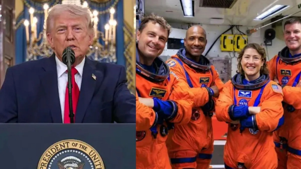 अमेरिका के राष्ट्रपति Donald Trump ने अंतरिक्ष यात्रियों की सफल वापसी पर उन्हें बधाई दी है और बड़ा ऐलान किया है। NASA के महत्वाकांक्षी आर्टेमिस II मिशन से लौटे अंतरिक्ष यात्रियों की तारीफ करते हुए ट्रंप ने कहा कि पूरी यात्रा शानदार रही और लैंडिंग बिल्कुल सटीक थी। उन्होंने कहा कि एक राष्ट्रपति के तौर पर उन्हें इस उपलब्धि पर गर्व है और वे जल्द ही इन अंतरिक्ष यात्रियों से व्हाइट हाउस में मुलाकात करेंगे। इसके साथ