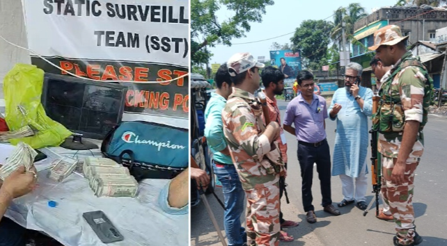 चुनाव ड्यूटी के दौरान बड़ी कार्रवाई करते हुए Indo-Tibetan Border Police और स्थानीय पुलिस ने पश्चिम बंगाल के डायमंड हार्बर क्षेत्र में एक वाहन से ₹9.88 लाख नकद बरामद किया है। यह कार्रवाई आईटीबीपी की एडहॉक-638 बटालियन द्वारा हटुगंज मोड़ पर नियमित चेकिंग के दौरान की गई।