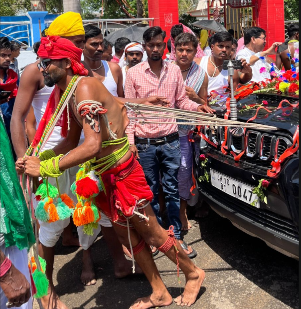 टाटा सिजुआ 12 नंबर स्थित गौरी शंकर धाम मंदिर में भोक्ता पर्व (चड़क पूजा) मंगलवार को पारंपरिक हर्षोल्लास और गहरी आस्था के साथ मनाया गया। शिव भक्त भगवान शिव को प्रसन्न करने के लिए शरीर में लोहे के हुक (कील) छिदवाकर लगभग 60 फीट ऊंचे खूंटे से लटककर परिक्रमा किया। परंपरा ग्रामीणों की मानें तो यह उत्सव सौ से अधिक वर्षों से मनाया जा रहा है। यह पर्व कठिन तपस्या और शिव-पार्वती की आराधना का प्रतीक है। अनुष्ठान निर्जला उपवास में रहकर भक्त समीप की जोरिया (नदी) में स्नान कर, नाचते-गाते हुए मंदिर पहुंचे और पीठ में कील चुभाकर ‘भोक्ता घूरा’ का अनुष्ठान पूरा किया। हैरतअंगेज कारनामे कई शिवभक्त पीठ में हुक फंसवाकर उससे स्कार्पियो खींचकर अपनी आस्था का परिचय दिया। भीड़ और उत्साह इस अनूठी परंपरा को देखने के लिए श्रद्धालुओं की भारी भीड़ मंदिर परिसर में उमड़ी। सांस्कृतिक विरासत का प्रतीक
