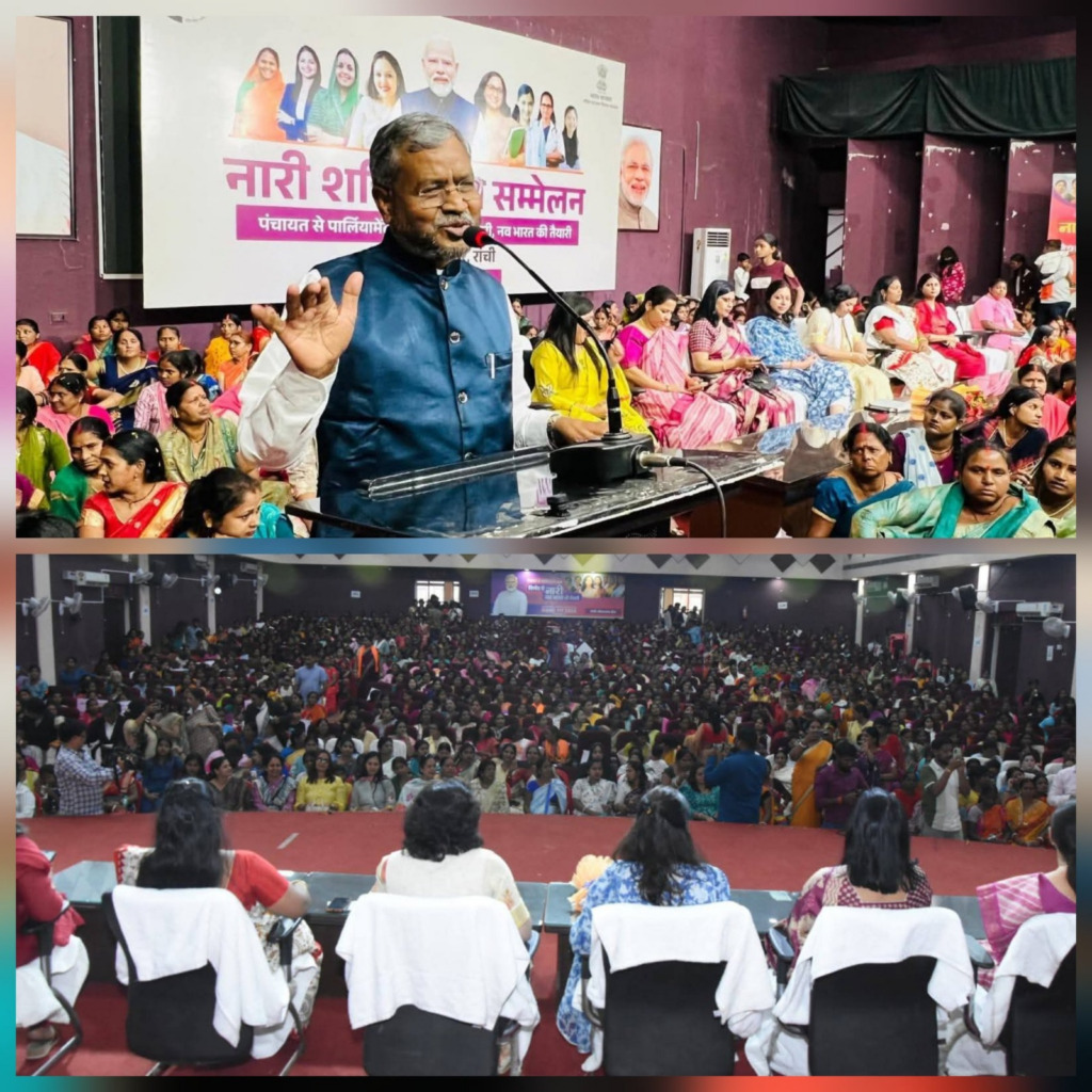 झारखंड की राजधानी Ranchi में नारी शक्ति वंदन अधिनियम को लेकर एक भव्य सम्मेलन का आयोजन किया गया। मोरहाबादी स्थित Aryabhatta Auditorium Morabadi में आयोजित इस कार्यक्रम में हजारों महिलाओं की भागीदारी देखने को मिली और पूरा सभागार खचाखच भरा रहा। कार्यक्रम का थीम था— “पंचायत से पार्लियामेंट तक, निर्णय में नारी, नव भारत की तैयारी।” इस आयोजन की अगुवाई रक्षा राज्य मंत्री Sanjay Seth ने की। उन्होंने कहा कि यह अधिनियम केवल कानून नहीं, बल्कि महिलाओं के वर्षों पुराने सपनों को साकार करने की दिशा में ऐतिहासिक कदम है। वहीं, नेता प्रतिपक्ष Babulal Marandi ने कहा कि भारत