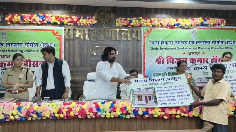 लिए शौचालय निर्माण करने का निर्देश दिया। कृषि विभाग द्वारा 375 हेक्टेयर फसल क्षति का प्रतिवेदन विभाग को भेजे जाने की जानकारी दी गई। साथ ही केसीसी के तहत पूर्व में अस्वीकृत आवेदनों को सुधार कर पुनः स्वीकृत किया जा रहा है। सांसद ने कोल कंपनियों को अमड़ापाड़ा क्षेत्र में पेयजल समस्या के समाधान हेतु बोरिंग कराने का निर्देश दिया। उपायुक्त ने संबंधित विभाग को कोल कंपनियों एवं प्रखंड प्रशासन के साथ समन्वय स्थापित कर आवश्यक स्थानों पर बोरिंग सुनिश्चित करने का निर्देश दिया। वहीं जिला क्रीड़ा पदाधिकारी राहुल कुमार ने बताया कि डीएफओ कार्यालय स्थित शहरकोल पंचायत के दुर्गापूर मौजा में प्रखंड स्तरीय स्टेडियम का निर्माण कार्य प्रगति पर है, जिसमें अब तक लगभग 25 प्रतिशत कार्य पूर्ण हो चुका है। पाकुड़िया एवं महेशपुर के लिए भी प्रखंड स्तरीय स्टेडियम निर्माण का प्रस्ताव विभाग को भेजा गया है। उपायुक्त ने कहा कि सांसद द्वारा दिए गए सभी निर्देशों का अनुपालन सुनिश्चित किया जाए। जिले में संचालित सभी योजनाओं को पारदर्शिता, गुणवत्ता एवं जवाबदेही के साथ पूर्ण करना हमारी सर्वोच्च प्राथमिकता है। बैठक के दौरान विभिन्न योजनाओं के लाभुकों के बीच स्वीकृति पत्र एवं परिसंपत्तियों का वितरण किया गया।