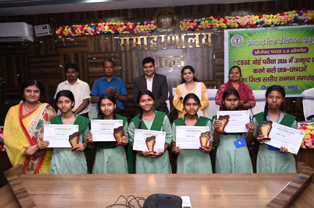 प्रोजेक्ट परख के अंतर्गत सीबीएसई बोर्ड परीक्षा में उत्कृष्ट प्रदर्शन करने वाले जिले के 29 छात्र छात्राओं को उपायुक्त मनीष कुमार, पुलिस अधीक्षक निधि द्विवेदी एवं अपर समाहर्ता जेम्स सुरीन द्वारा सम्मानित किया गया। पुलिस अधीक्षक ने कहा कि परीक्षा केवल औपचारिकता नहीं, बल्कि जीवन में संभावनाओं के द्वार खोलने का माध्यम है। उन्होंने कहा कि हर विद्यार्थी की परिस्थितियां अलग होती हैं, लेकिन सही शिक्षा, सकारात्मक माहौल, अभिभावकों का आशीर्वाद और गुरुजनों का मार्गदर्शन सफलता की राह तय करते हैं। उन्होंने विद्यार्थियों को मेहनत, अनुशासन और आत्मविश्वास के साथ आगे बढ़ने की प्रेरणा देते हुए कहा कि जीवन में आगे बढ़ने के लिए इन मूल्यों का होना अत्यंत आवश्यक है। उन्होंने विद्यार्थियों को अति आत्मविश्वास से बचने और निरंतर अध्ययन पर ध्यान केंद्रित करने की सलाह दी। उपायुक्त ने विद्यार्थियों को बधाई देते हुए कहा कि सफलता केवल अंकों से नहीं मापी जाती, बल्कि यह भी महत्वपूर्ण है कि छात्र ने किन परिस्थितियों और चुनौतियों का सामना करते हुए यह उपलब्धि हासिल की है। हर बच्चे की सफलता में उसके शिक्षकों, अभिभावकों