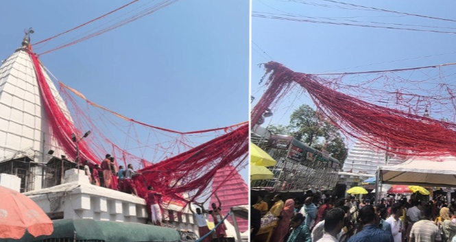 झारखंड के देवघर स्थित प्रसिद्ध बाबा बैद्यनाथ मंदिर में मंगलवार सुबह एक अनोखी घटना ने श्रद्धालुओं का ध्यान आकर्षित किया। बाबा बैद्यनाथ और माता पार्वती मंदिर को जोड़ने वाला पवित्र गठबंधन धागा अचानक टूट गया, जिससे कुछ समय के लिए मंदिर परिसर में हल्की अफरा-तफरी का माहौल बन गया। घटना के तुरंत बाद मंदिर के भंडारियों ने सूझबूझ दिखाते हुए धागे को संभाला और दोबारा बांध दिया। हालांकि इस दौरान धागे का एक हिस्सा नीचे गिर गया, जिसे प्रसाद के रूप में पाने के लिए श्रद्धालुओं और तीर्थ पुरोहितों के बीच होड़ मच गई।