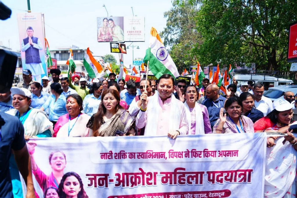 दुशासन बताया। सीएम धामी ने कांग्रेस पर परिवारवाद का भी आरोप लगाया। उन्होंने कहा कि पार्टी में महिला सशक्तिकरण सिर्फ एक परिवार तक सीमित रहा है। साथ ही प्रियंका गांधी पर निशाना साधते हुए कहा कि “लड़की हूं, लड़ सकती हूं” जैसे अभियान केवल दिखावा साबित हुए। उन्होंने यह भी कहा कि नरेंद्र मोदी के नेतृत्व में महिलाओं को सशक्त बनाने के लिए कई ठोस कदम उठाए गए हैं, जिनसे देश की महिलाएं अब हर क्षेत्र में आगे बढ़ रही हैं। संबोधन के बाद मुख्यमंत्री के नेतृत्व में पदयात्रा भी निकाली गई, जिसमें हजारों महिलाओं ने भाग लिया। रैली में महिलाओं का उत्साह और आक्रोश साफ तौर पर देखने को मिला।