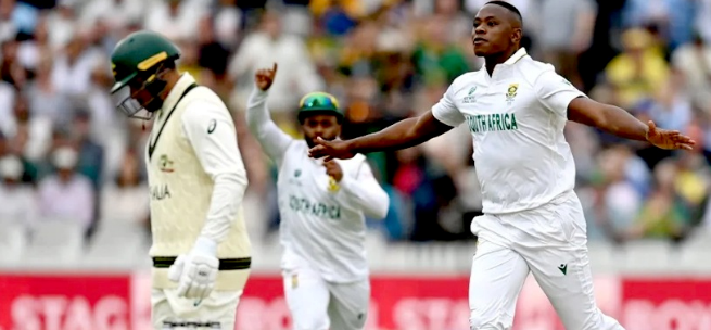 लॉर्ड्स में कल से शुरू हुए वर्ल्ड टेस्ट चैंपियनशिप फाइनल में साउथ अफ्रीका ने टॉस जीतकर गेंदबाजी चुनी और शुरुआती झटकों से ऑस्ट्रेलिया को हिला दिया। ख्वाजा बिना खाता खोले रबाडा का शिकार बने, जबकि ग्रीन भी उसी ओवर में आउट हो गए। लाबुशेन ने 17 रन बनाए और येनसन की गेंद पर पवेलियन लौटे। हेड भी सिर्फ 11 रन बनाकर आउट हुए। पहले सेशन में ऑस्ट्रेलिया ने 4 विकेट पर 67 रन बनाए हैं। रबाडा और येनसन ने दो-दो विकेट लिए। दोनों टीमों ने पहले ही प्लेइंग इलेवन का ऐलान कर दिया था। मुकाबला रोमांचक मोड़ पर है।